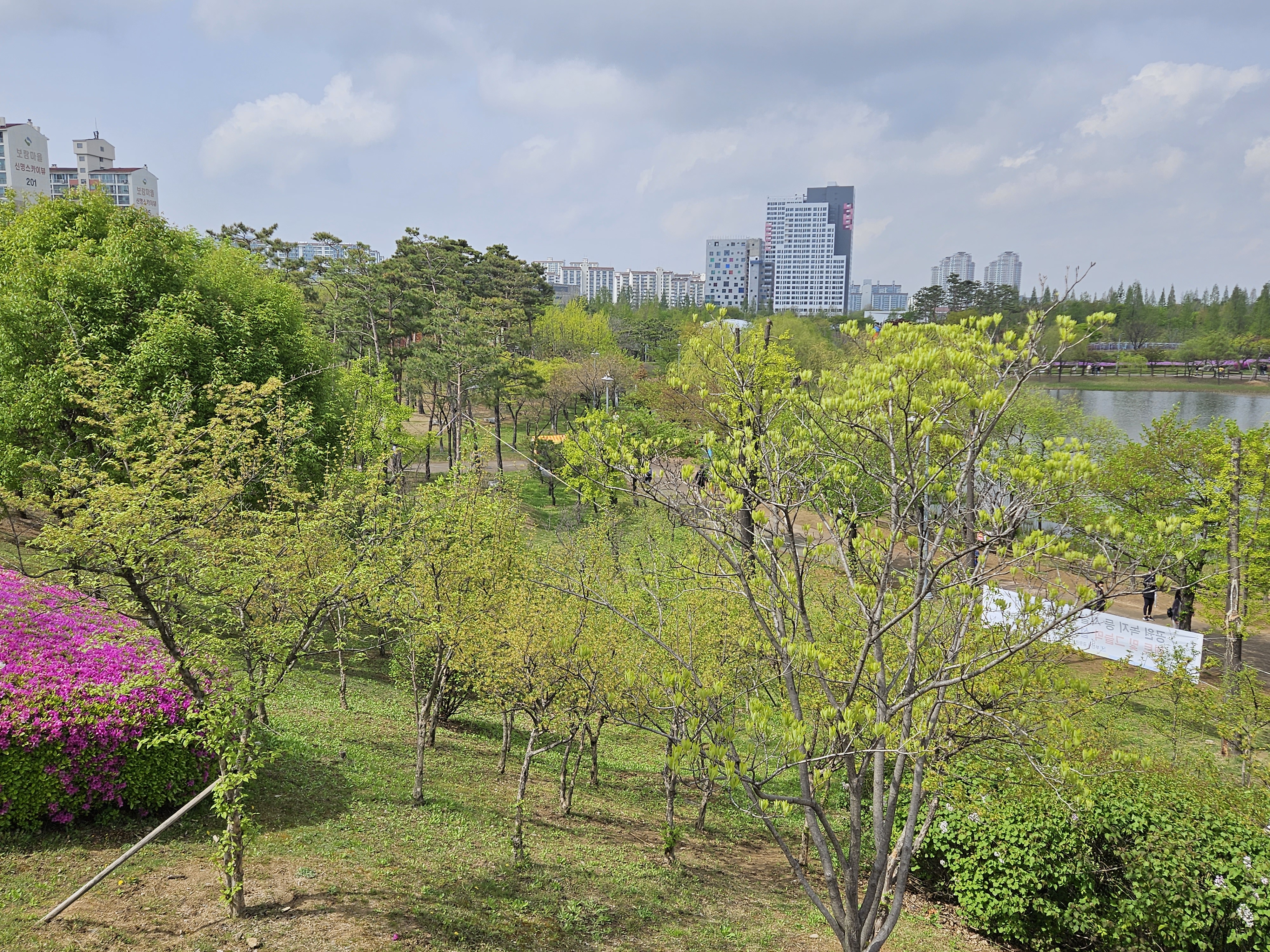 점심을 해결하고 비온 후의 호수공원을 한바퀴 걸으면서 봄비후의 분위기를 즐기기 위해서이다.
