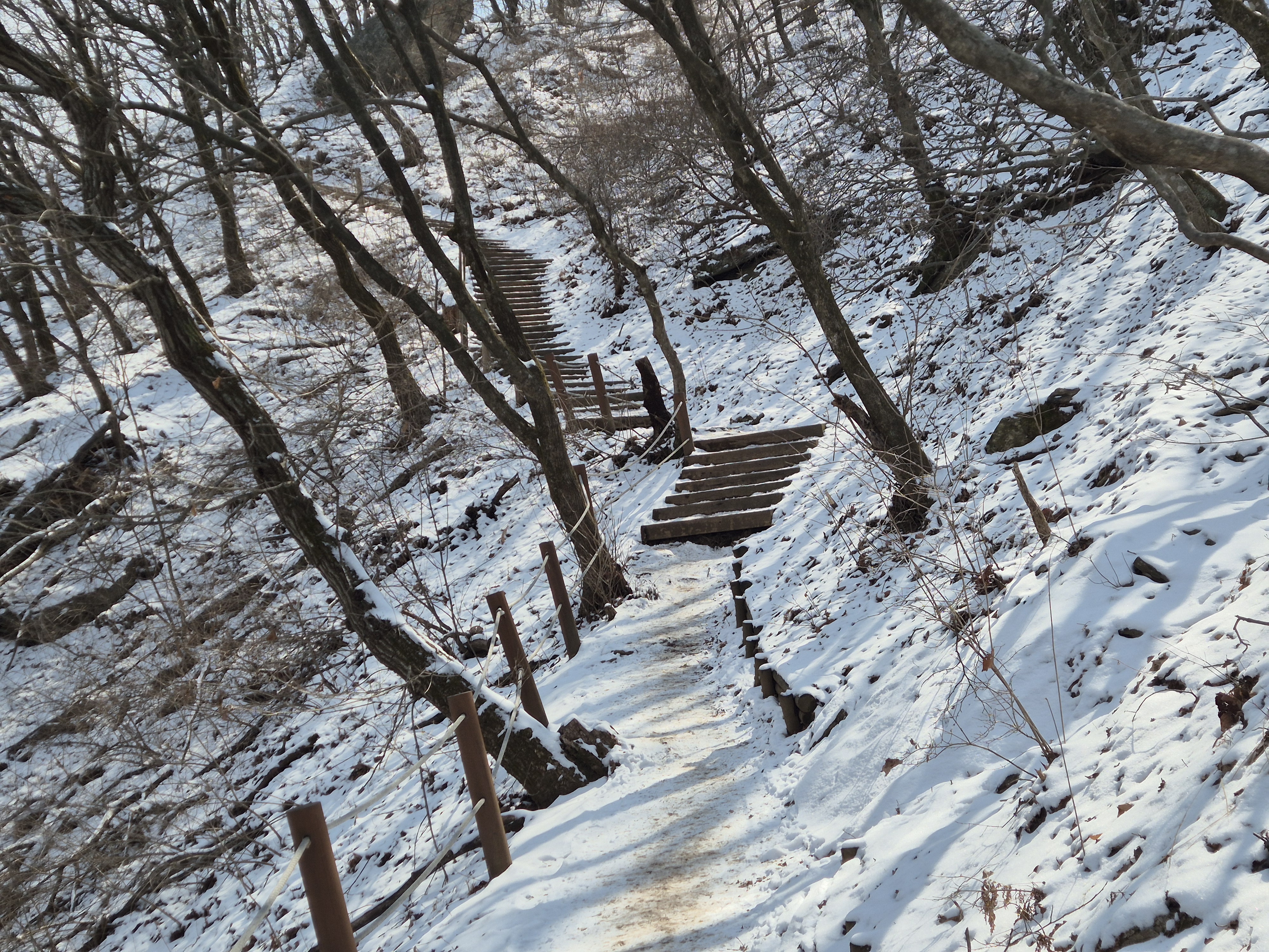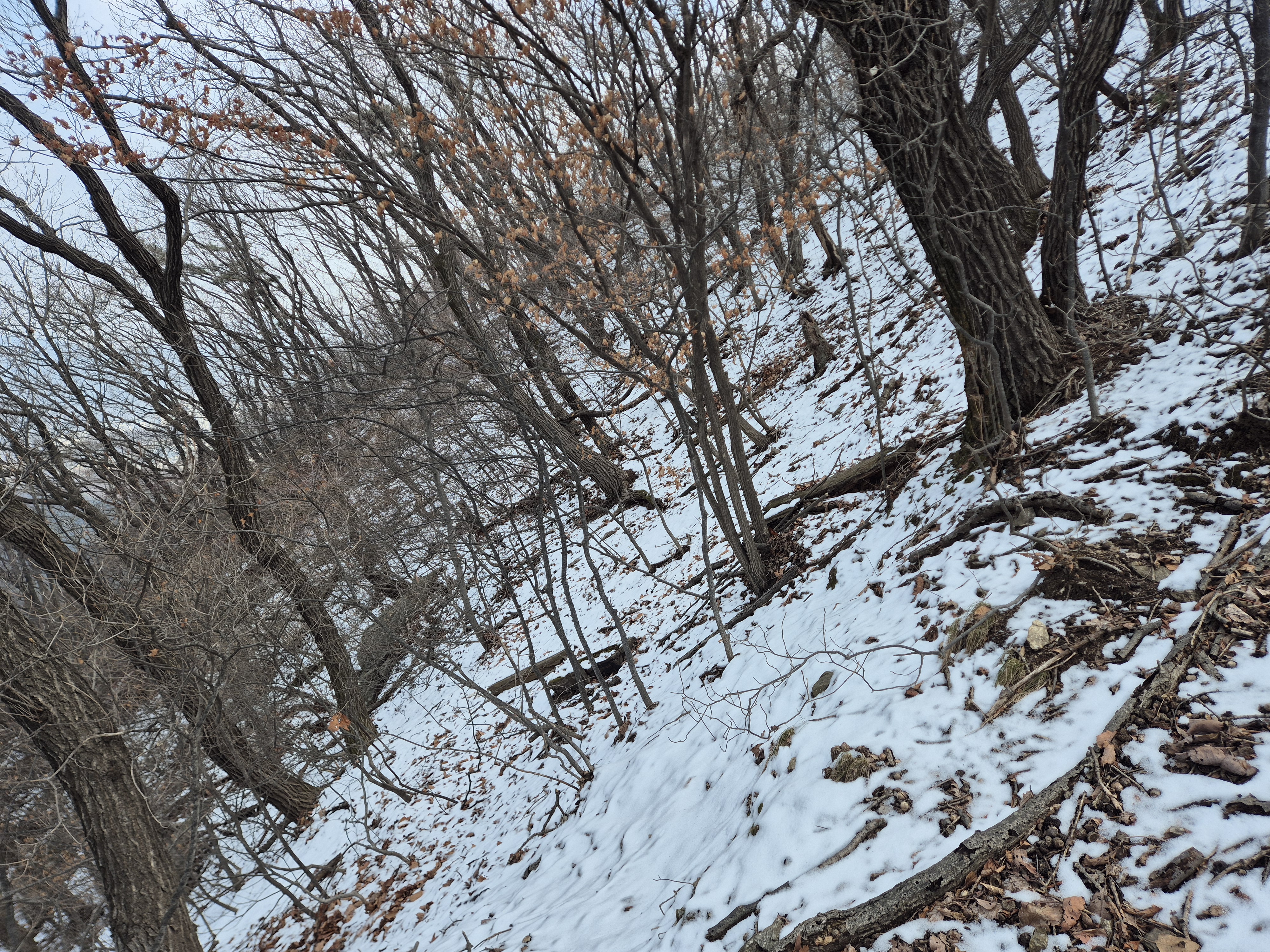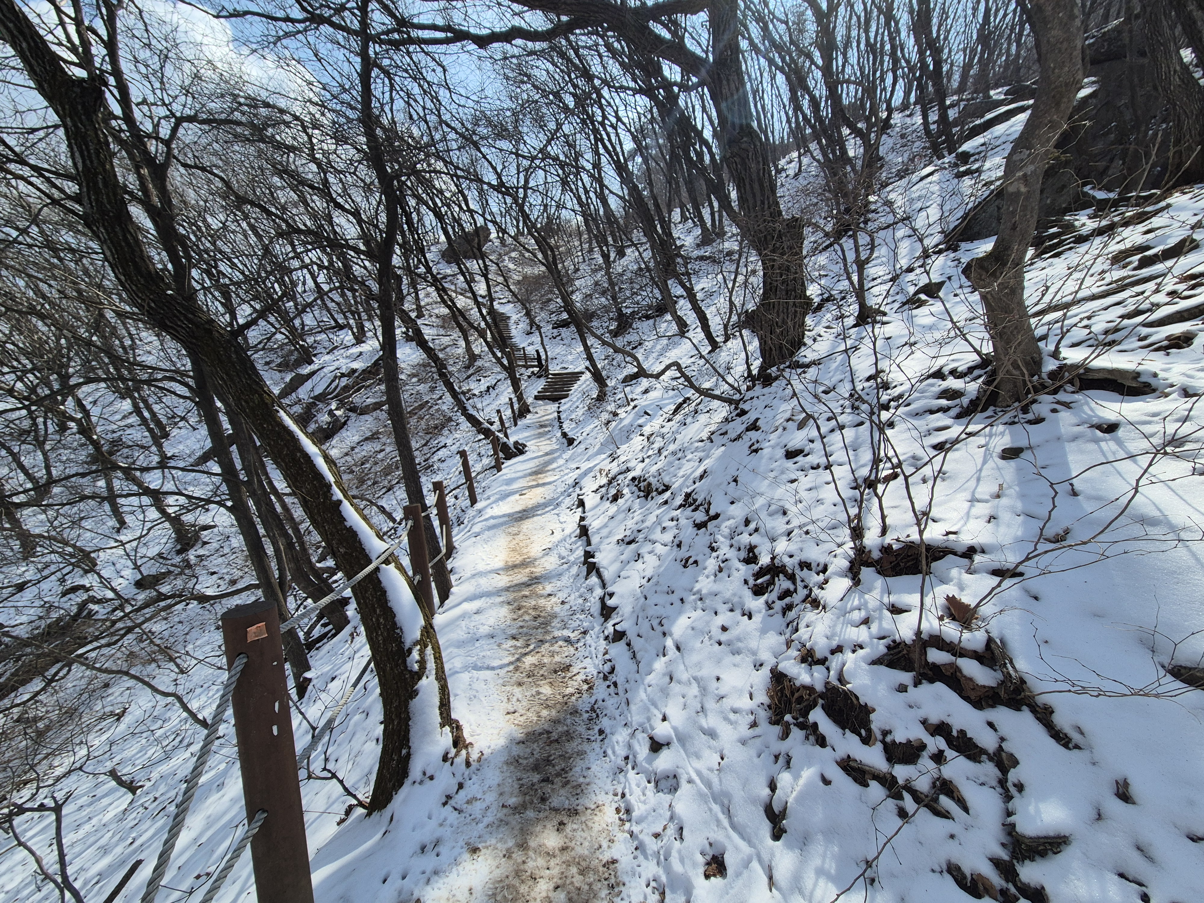 평일이라 지나는 산객이 거의 보이지 않고 부분적으로 눈이 녹아 질척이는 구간도 많다.