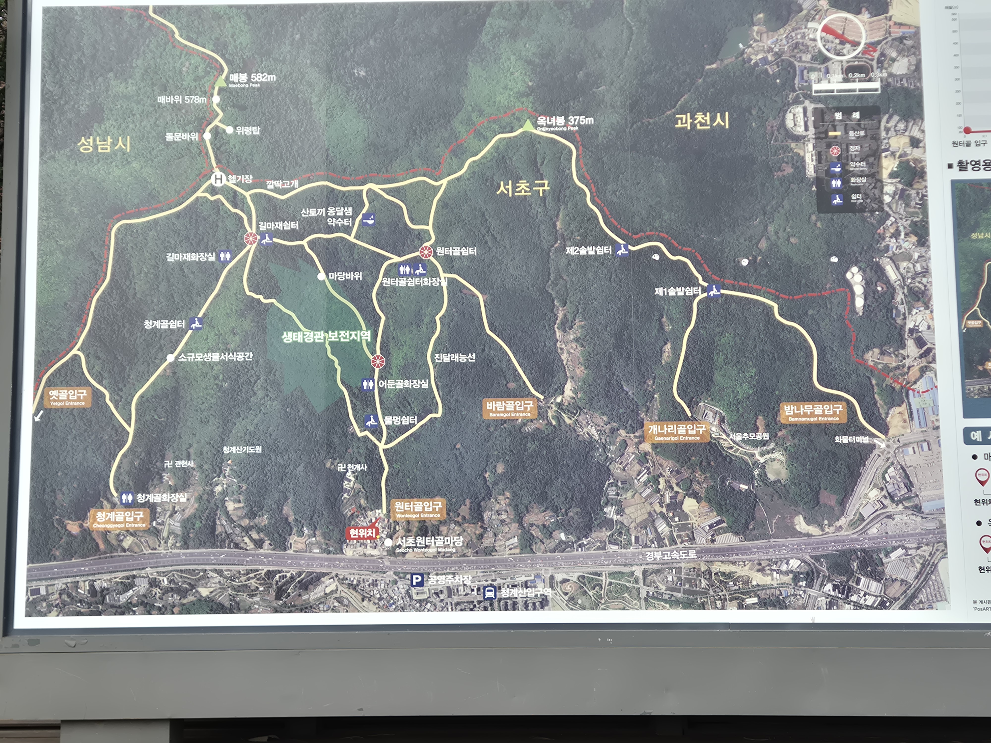 신분당선의 청계산입구에서 하차하여 산으로 들어간다.